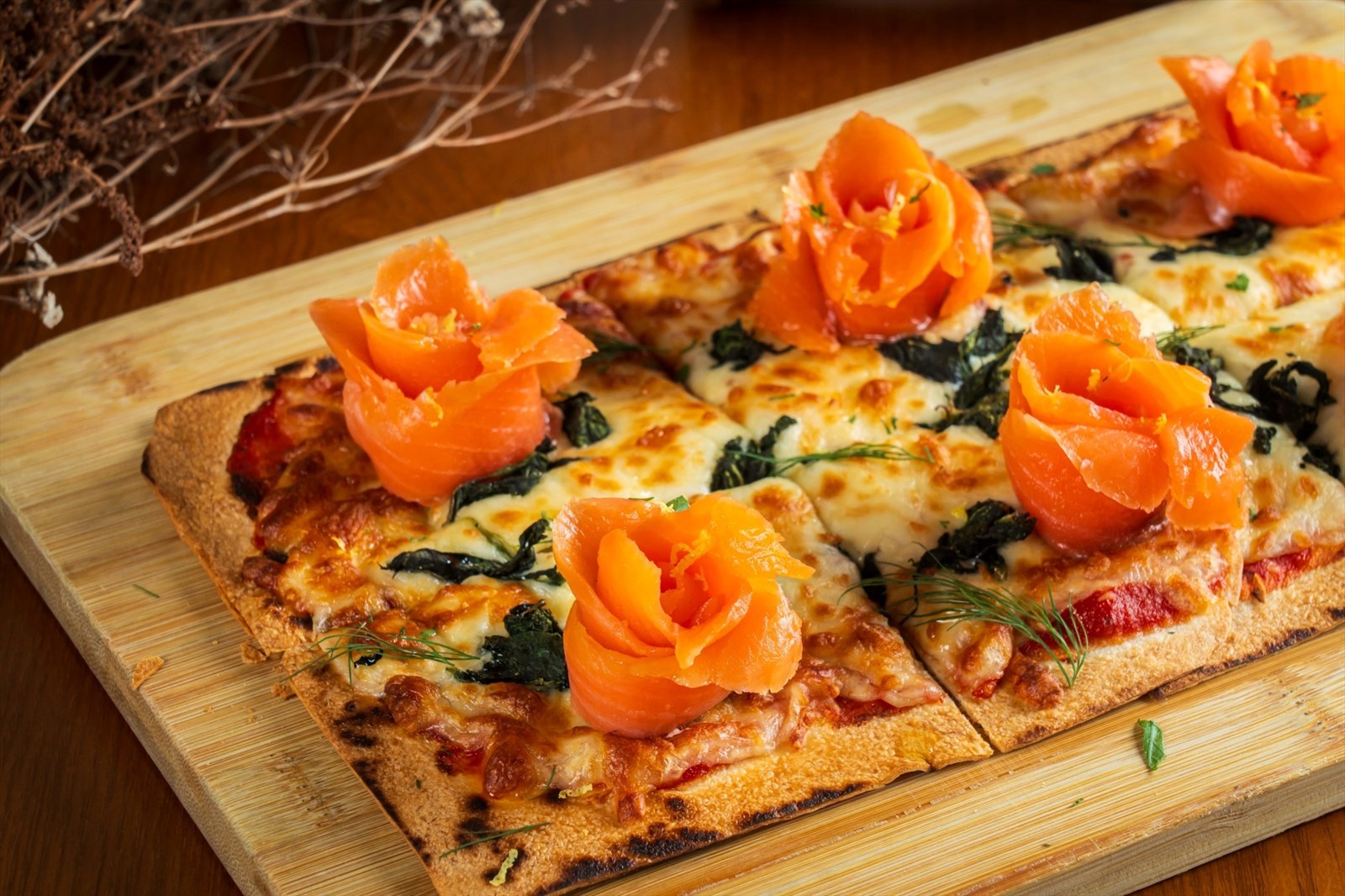 菠菜煙三文魚薄餅