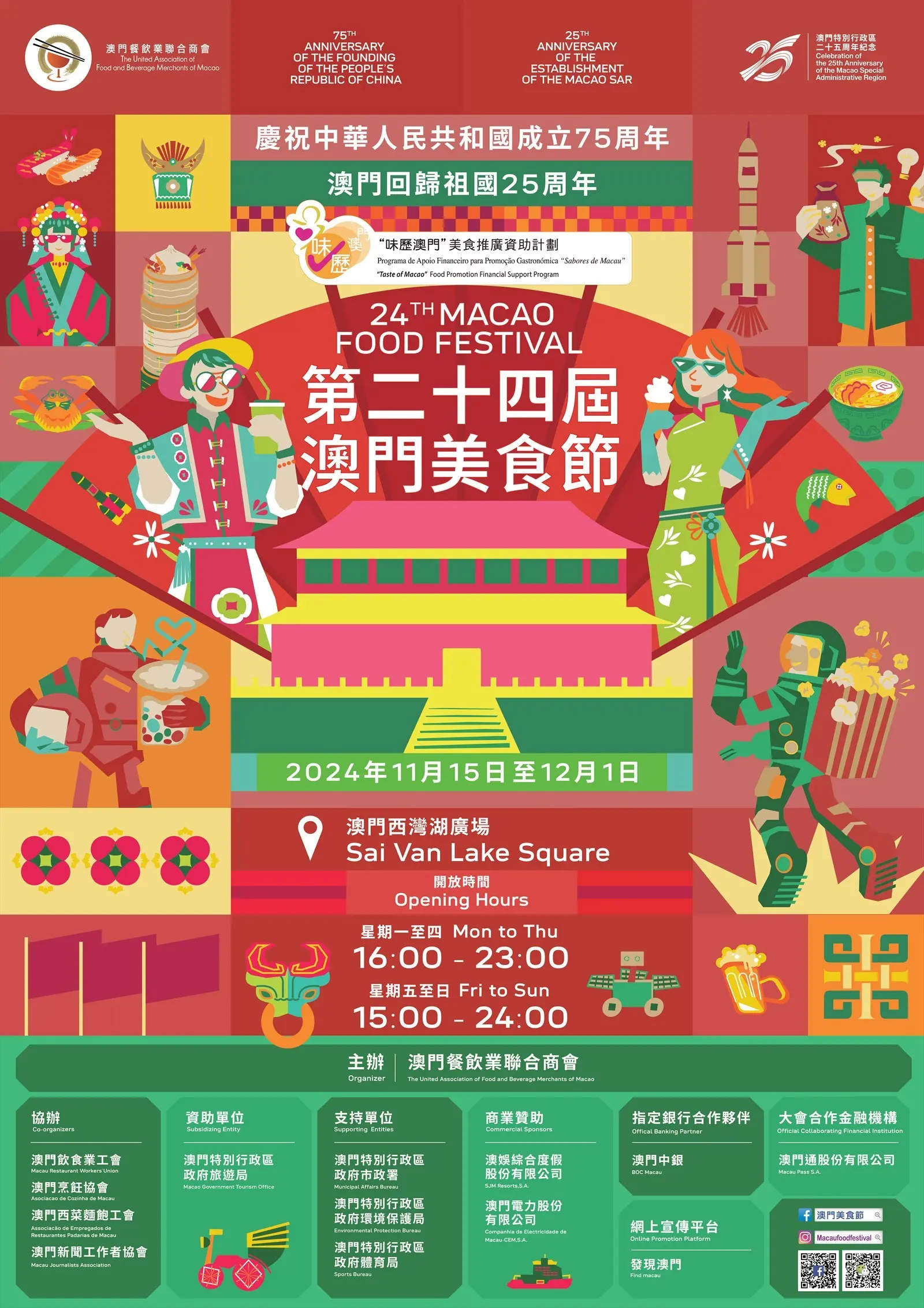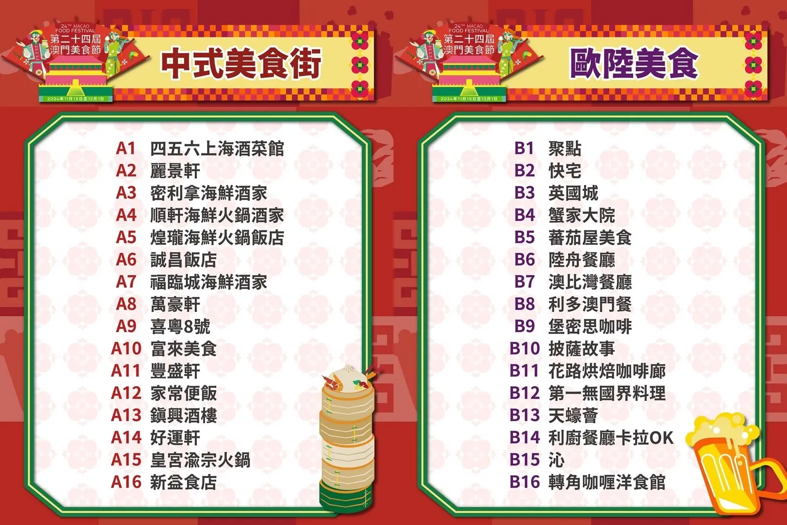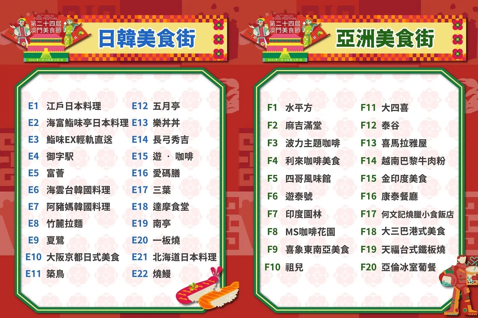 過海嘆美食~澳門年度大型活動「第二十四屆澳門美食節」,由即日起至2024年12月1日舉行,而作為「創意城市美食之都」當然美食多籮籮啦。今屆匯聚141個餐飲品牌、10個遊戲攤位,仲有連串精彩表演節目,快閃一轉relax吓都唔錯。美食攤位包括中式、歐陸、日韓等風味,一次過食勻全世界呀!