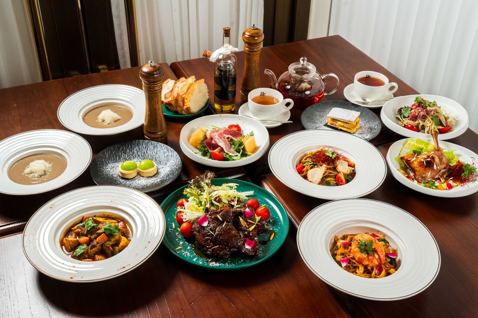 想一晚食多幾款法國料理,而家5折優惠嘅「六道菜晚市二人套餐」就好抵食。單單野菌忌廉湯都係自家用野菌blend成,係真材實料嘅濃厚菌香。主菜亦有最招牌嘅新鮮龍蝦手打意大利闊麵,同埋中法fusion嘅紅館姜母鴨。