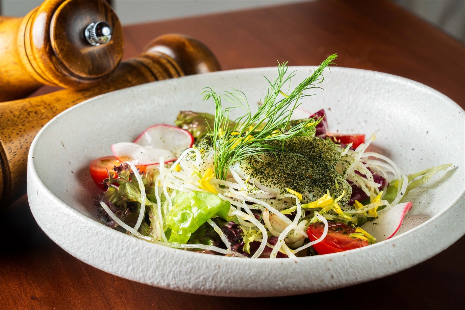沙律鋪滿低溫慢煮鯛魚,分量多到有驚喜。而且慢煮鯛魚好嫩滑,配埋昆布粉、檸檬清新鮮味,好突出到魚肉鮮甜。