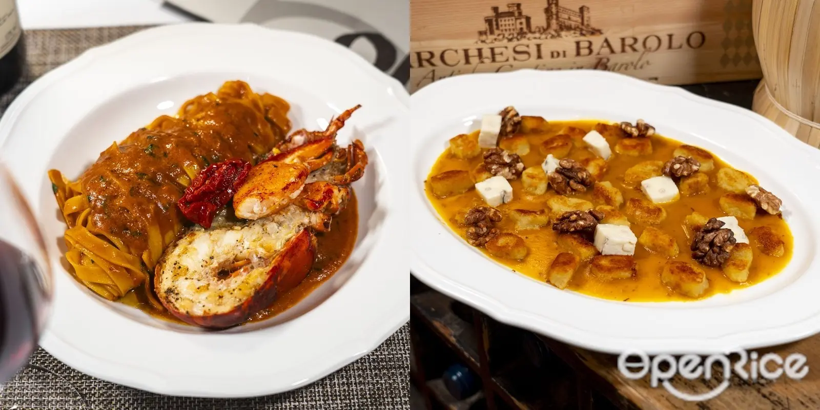 龍蝦手工闊麵(左)|手工意式薯糰配南瓜松露忌廉汁(右)