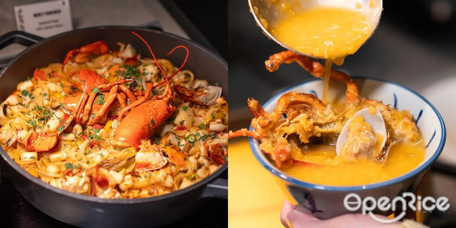 龍蝦汁海鮮意粉(左)|龍蝦海鮮粥(右)