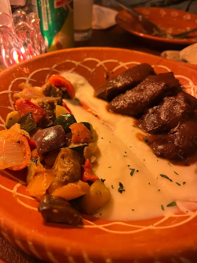 豬肉經過長時間燴製後,仍保持肉質鮮嫩,非常腍,輕輕一切已見到裏面粉紅既頰肉!配上香滑嘅薯蓉一齊食,口感更佳!