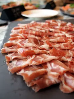 先向冷盤區出發,巴拿馬火腿,鴨胸肉,沙樂美,車打芝士及藍芝士等都非常悅目,而且亦有賣相不俗的三文魚凍。巴拿馬火腿脂肪比例不算多,吃起上來鹹香雖然不足,但味道整體還可以。鴨胸肉切得厚厚的,嚼感卻是軟軟的,但我蠻喜歡這種感覺。