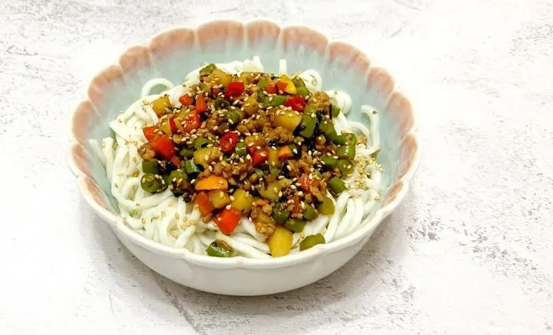 3. 煲滾水,上海麵烚約6分鐘或至喜歡的軟硬程度,上碗時連少許麵湯,把炒好的澆頭淋在麵上,撒芝麻。