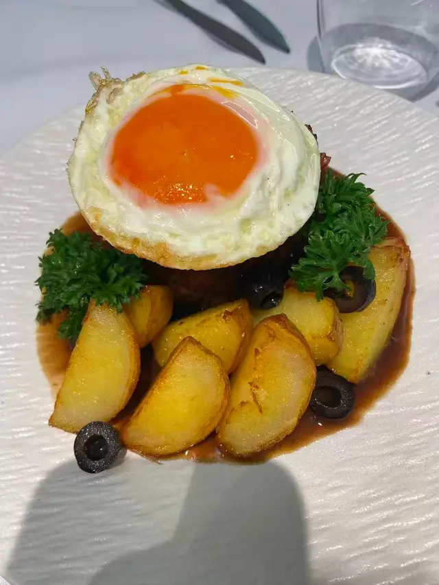 葡式鱈魚,外層烤到微微焦香,魚肉一絲絲鹹香入味,但又唔會過鹹,肉質保持嫩滑。朋友話「呢個先係正宗葡式風味,唔似出面嗰啲死鹹」,我哋即刻覺得冇揀錯餐廳。