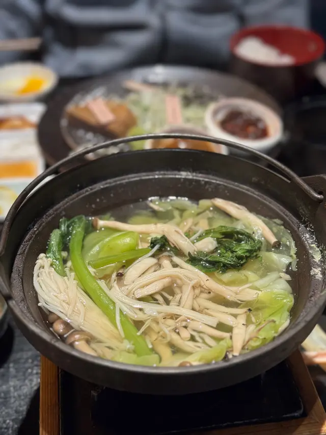 湯底濃郁嘅味噌香氣🤤味道鹹鮮有致仲帶有淡淡嘅昆布幽香👏🏽大大隻嘅松葉蟹腳🦀肉質飽滿鮮甜,煮一陣蟹肉嘅精華完全滲晒入湯底同蔬菜🥬度🫶🏽