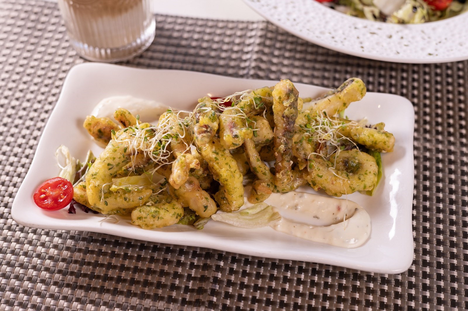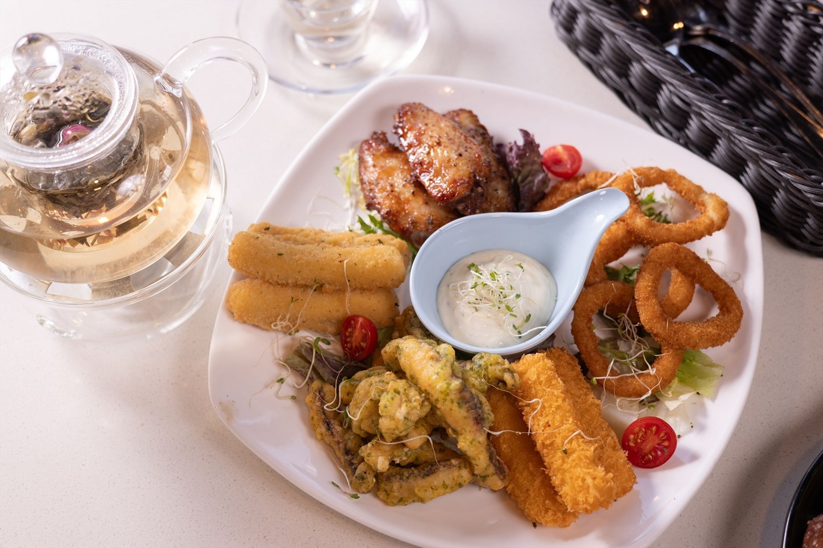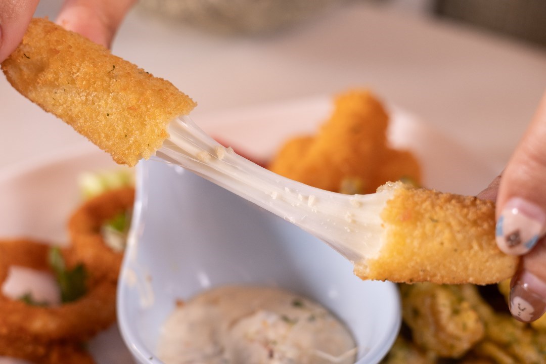 特色拼盤有究極拉絲效果嘅香草芝士條。