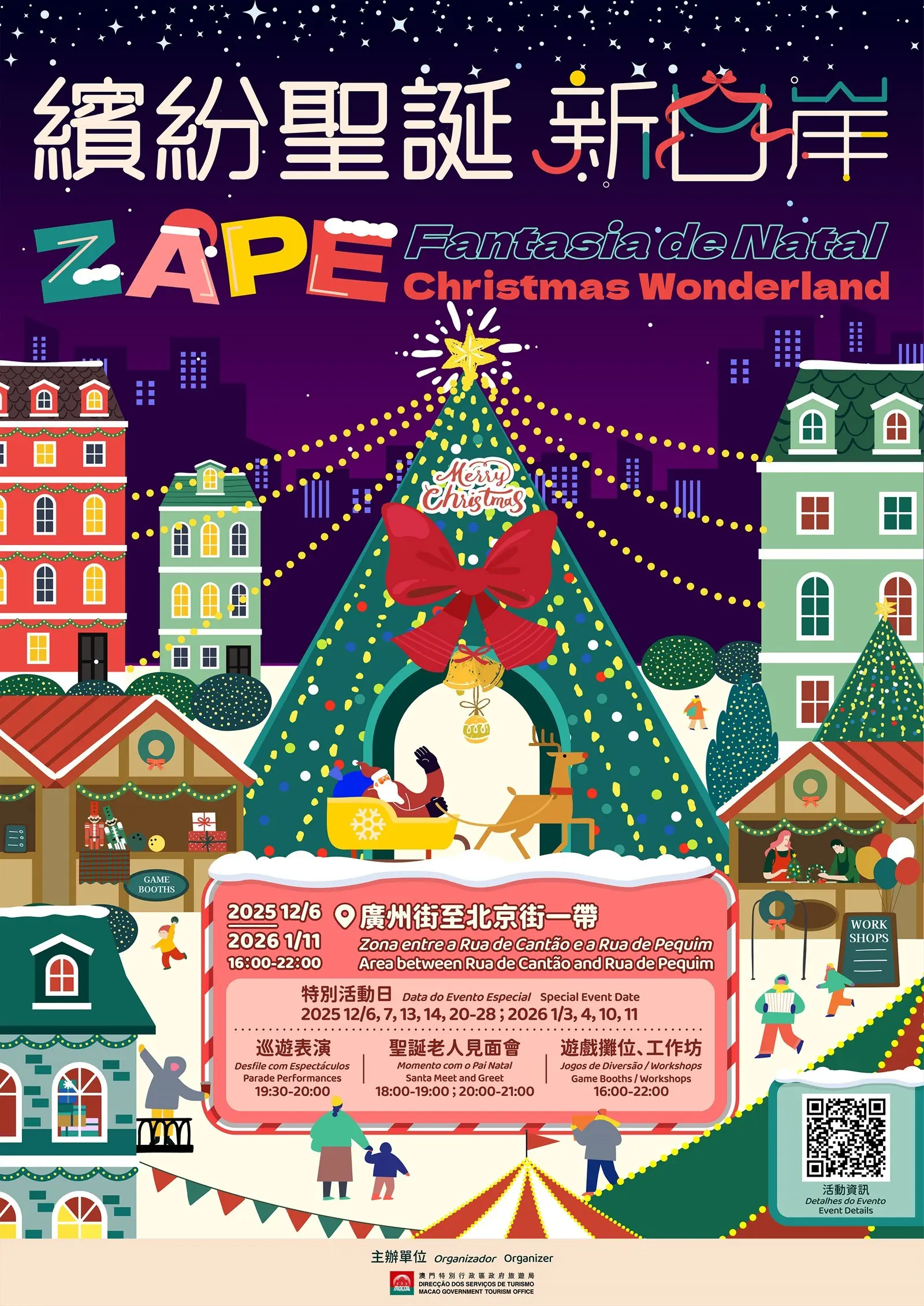平時澳門遊多數去大三巴一帶、氹仔官也街等熱門地區,想發掘澳門另一面?不妨考慮去新口岸感受與別不同嘅聖誕氛圍!「繽紛聖誕新口岸」由即日起至2026年1月11日,聖誕主題街區佈置咗巨型璀璨聖誕樹等節日打卡位,仲有聖誕燈飾,特別時段更有夢幻飄雪效果!