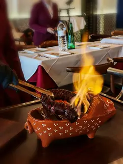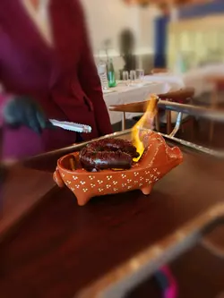 必吃炙燒葡式香腸,堂前燃火,熊熊火光,烤香四溢,不只有視覺效果,更令香腸之皮更脆,口感非常好。