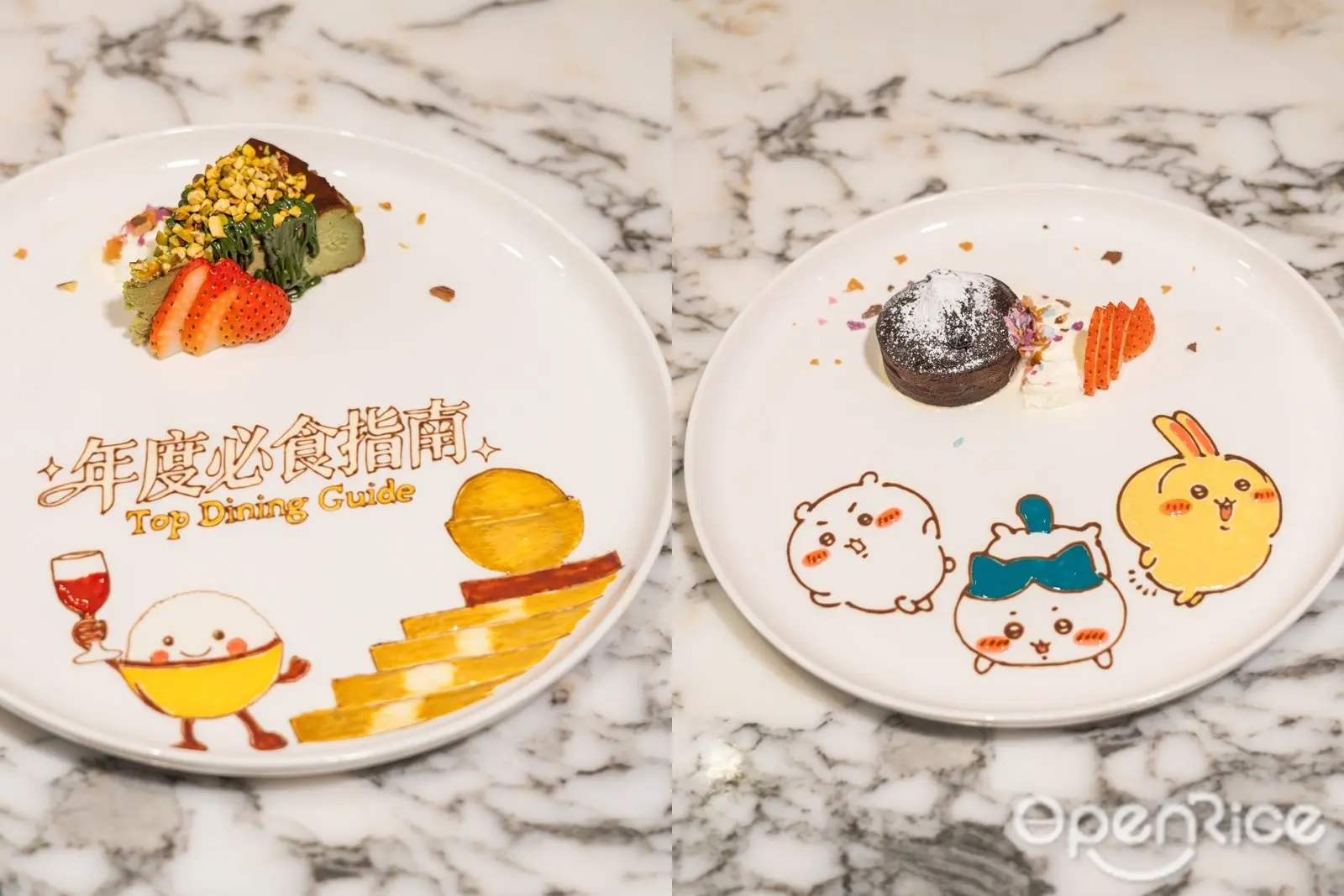 客製化手繪卡通畫碟可謂家賀屋一大賣點,背後其中一位大功臣非主廚Frankie莫屬。展開畫碟之路全因機緣巧合,起初Frankie為相熟朋友畫了Chiikawa卡通畫碟,沒想到作品在Chiikawa群組及Threads爆紅彈起,迴響之大令他受寵若驚。甜品碟成為了Frankie發揮小宇宙的畫板,每一筆一畫都盛載了客人的專屬故事。