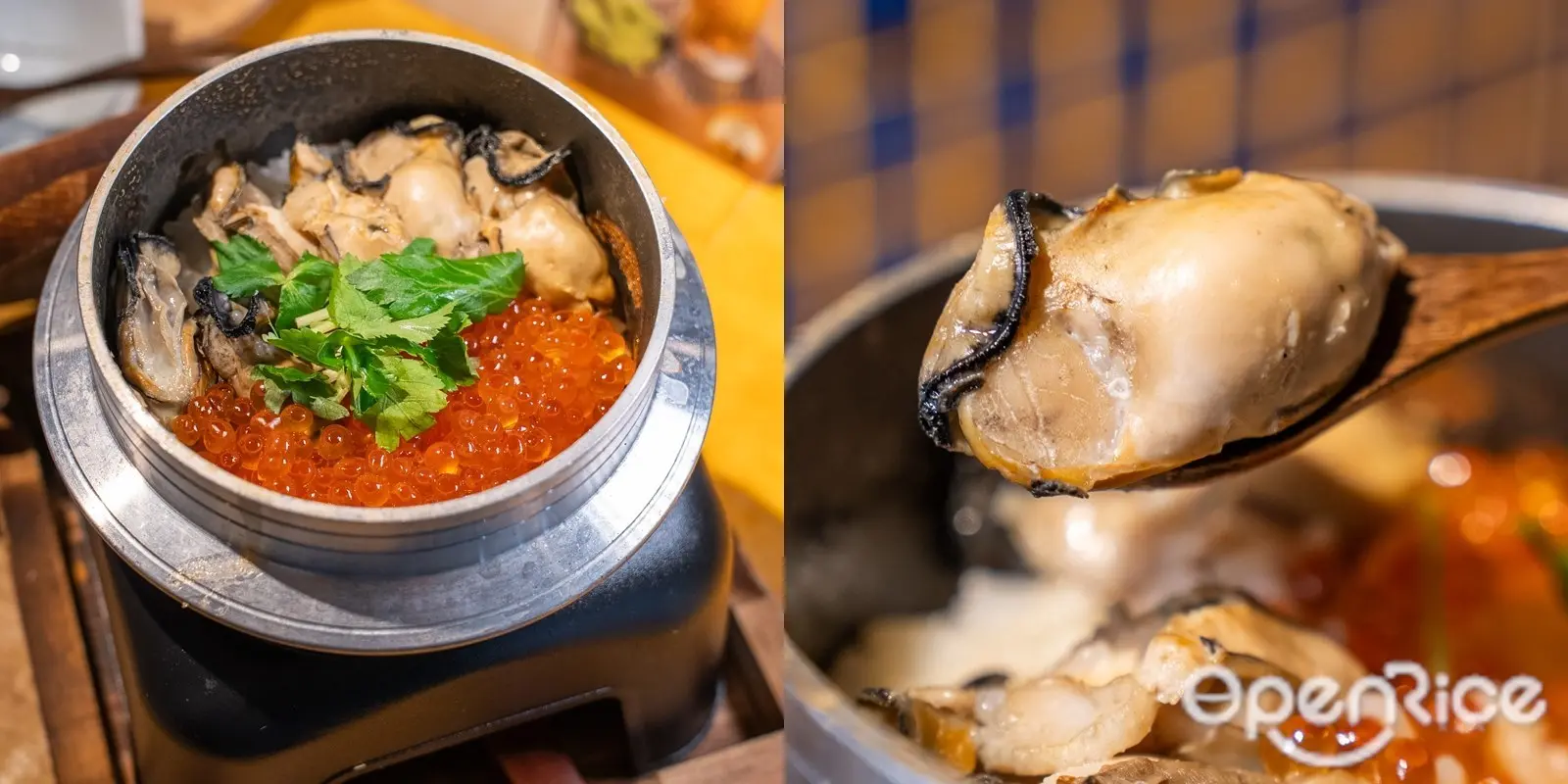 生蠔三文魚子釜飯賣相誘人,蠔肉跟三文魚子的配搭鹹香鮮味