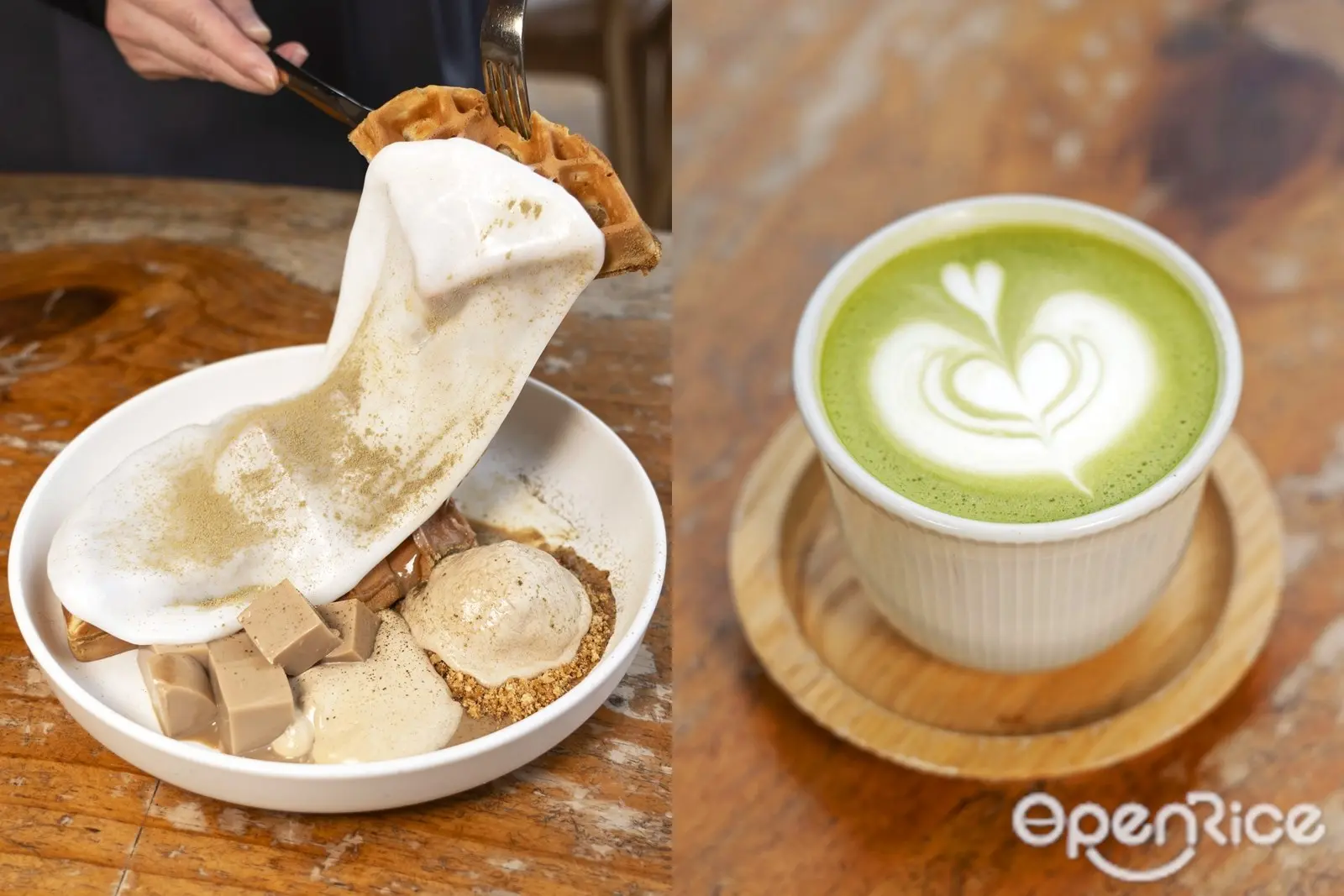 招牌麻糬窩夫甜品可謂Cafe的爆紅甜品,大推港式鴛鴦麻糬黑糖窩夫,面層鋪滿大大塊軟糯拉絲的麻糬,配上外脆內軟的窩夫、港式奶茶啫喱、香滑咖啡雪糕,還有港式奶茶醬,神還原鴛鴦風味!嘆甜品配杯咖啡或特飲就最好不過,Cafe的飲品選擇眾多,有西村抹茶拿鐵、士多啤梨抹茶奶蓋、花生奶蓋拿鐵,打卡一流~