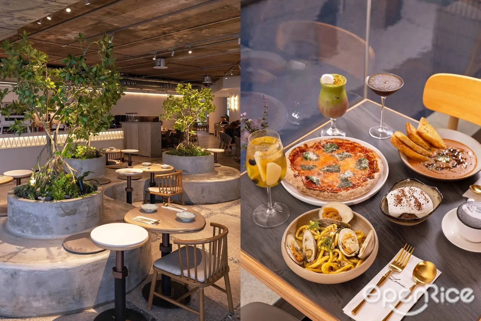 餐廳注入朝啡夕酒的概念,咖啡和酒類任君選擇。竹炭牛奶咖啡拉花精緻,開心果朱古力特飲亦相當受歡迎。特調Cocktails方面,易入口的白酒版Sangria水果酒、Espresso Martini都是熱門之選。