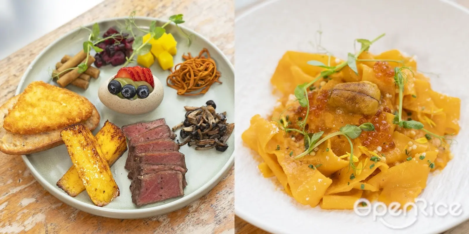 咖啡店餐單又怎少得了All Day Breakfast?全日早餐有粉嫩的低溫慢煮西冷、金黃香脆炸薯餅、玉子燒、水果乳酪等,好豐富。餐廳還有多款手工意粉,推介海膽闊蛋麵,自家製意粉掛汁有咬口,海膽汁香濃Creamy,加上三文魚子帶出鮮味。