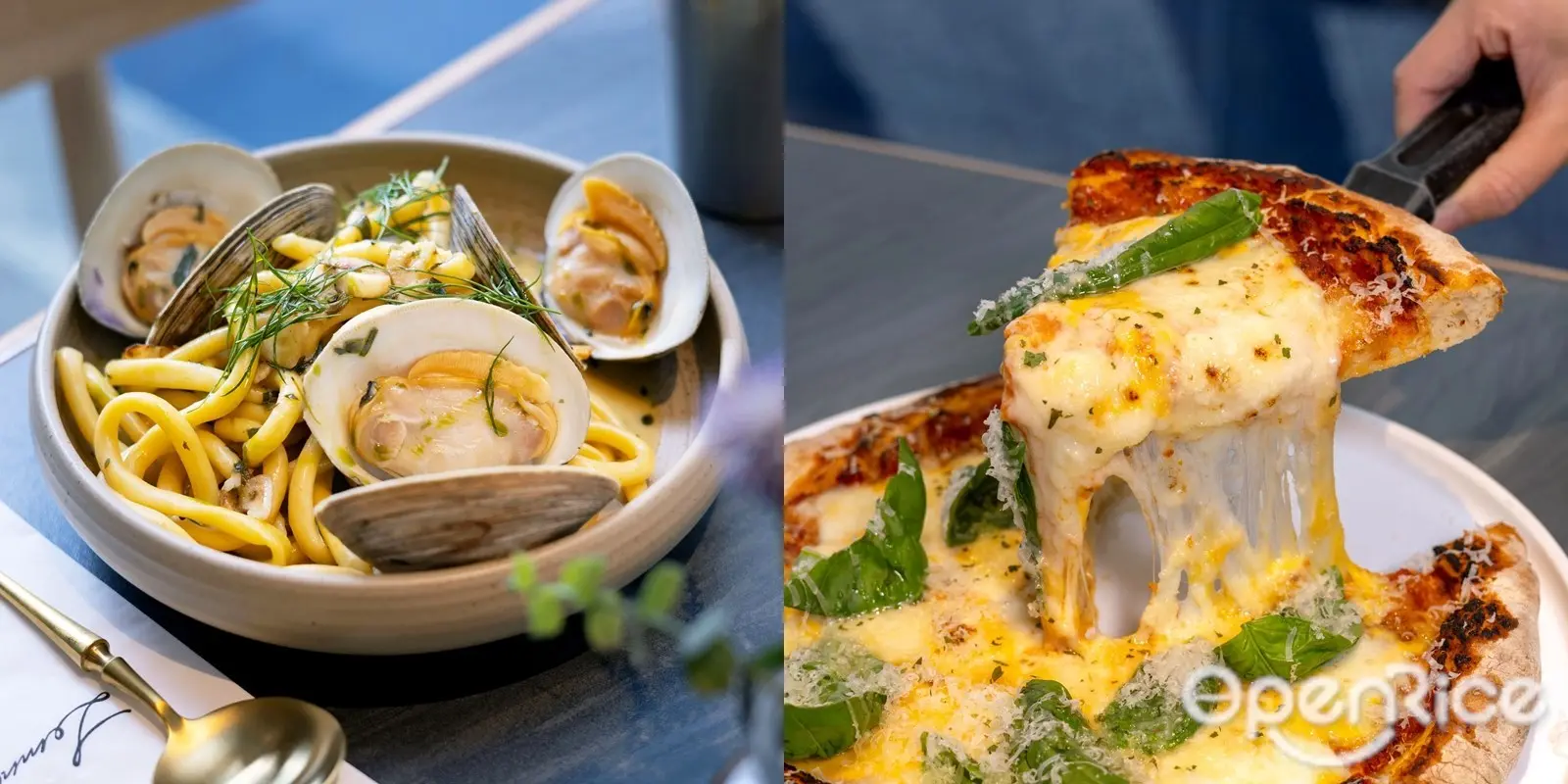 餐廳最近推出了新Menu,為大家帶來新鮮感。美國車里蜆手工意粉有驚喜,加入雪梨酒、龍蒿,香氣誘人。蜆肉大隻鮮甜,手工飲管麵比一般意粉更能掛滿醬汁,加倍入味。跟朋友吃飯聚會必點經典口味的Margherita Pizza,批邊外脆內柔韌,以清新羅勒配酸甜蕃茄醬,放滿水牛芝士及車打芝士,趁熱食有超浮誇芝士拉絲!