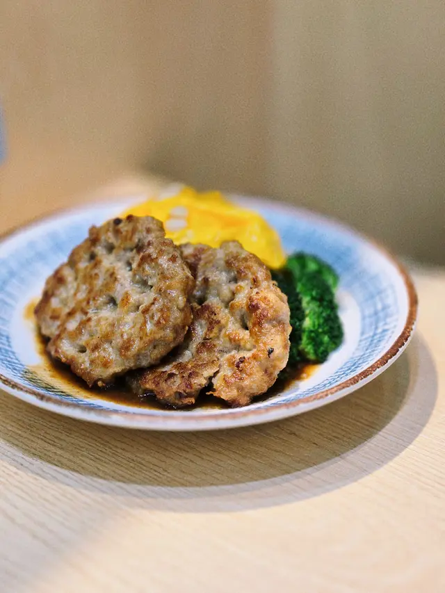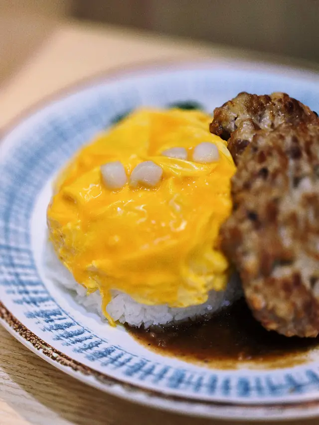 除咗塊肉餅,仲有滑蛋同帶子粒,佢另外有咖喱汁、黑椒汁、蔥油汁揀,所以選擇都幾多🥳