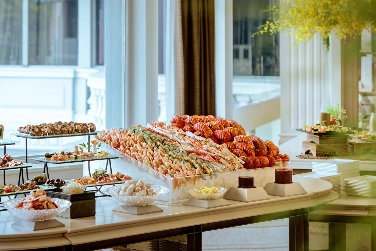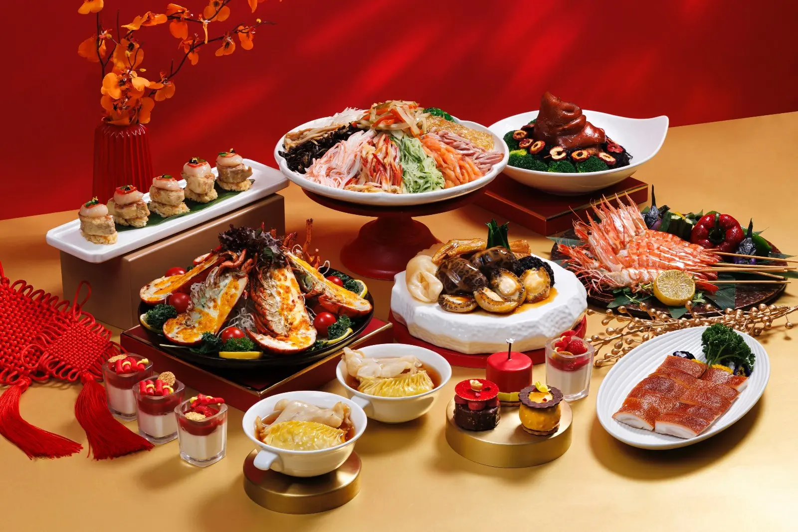 想多元化啲,可以揀呢個有齊中西式嘅新年自助餐~一邊有環球美饌,一邊又擺滿意頭十足嘅賀年菜式,好啱約埋親友一家大細食餐開年飯。必玩位當然係七彩繽紛撈起,自己親手撈住講祝福,氣氛即刻升溫!! 另外即席分切嘅脆皮燒乳豬都好有存在感,皮脆肉嫩,夾幾件已經好滿足。想食矜貴啲仲有蠔皇醬汁慢煮嘅花膠同鮑魚啊。甜品區都落足心機,「幸運八」草莓洛神花啫喱伴櫻花奶凍、桂花椰汁糕、紅莓朱古力噴泉,再加幾款Häagen-Dazs雪糕同即製草莓銅鑼燒,食到尾都仲想再encore~