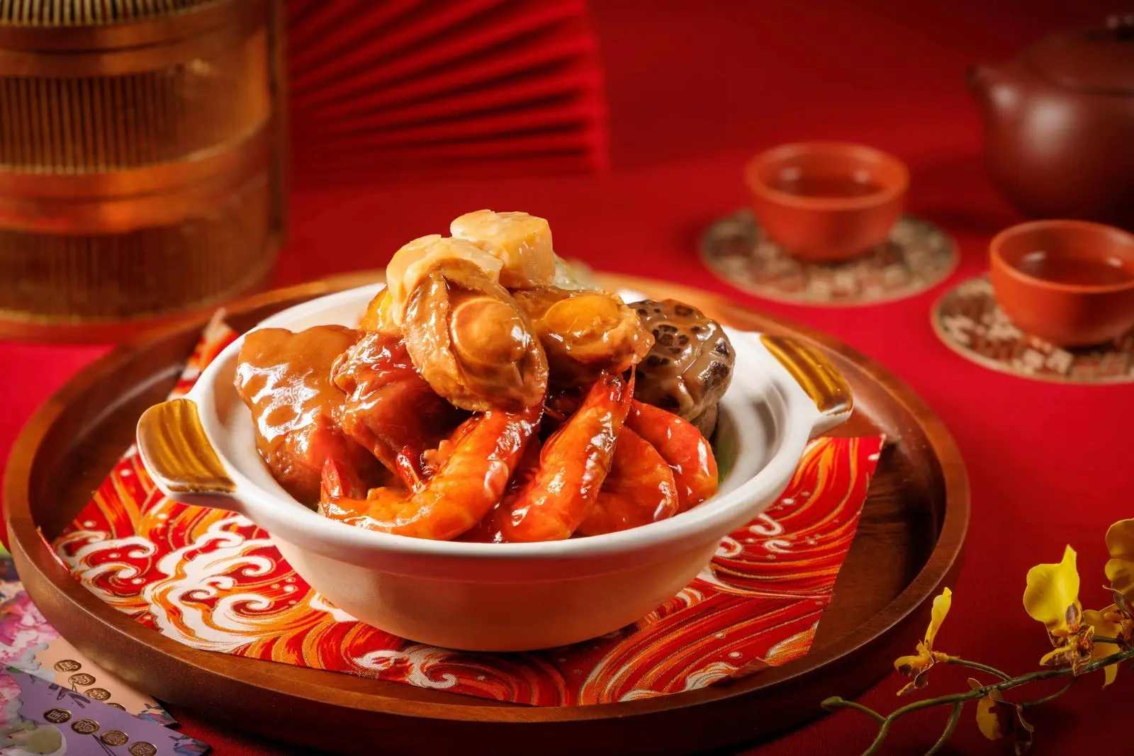 主打傳統賀年菜式,必試象徵「風生水起」嘅三文魚撈起,同埋寓意「發財好市」嘅髮菜炆蠔豉。另外廚師會用矜貴食材炮製經典粵菜,例如好意頭嘅錦繡紅袍、五福臨門。最抵讚係惠顧賀歲自助晚餐,每兩位賓客仲會獲贈一客迷你盆菜,兩個人share食啱啱好,儀式感即刻加分~