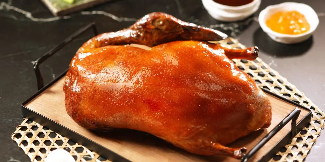 Menu includeds: Roasted Peking Duck (Whole) + Honey Balsamic Spare Ribs + Steamed Pork Dumplings + Fish Soup with Coriander OR Duck Bone with Winter Melon Soup + Stir-fried Diced Chicken with Chilli + Stir-fried Beef with Brown Bean Paste + Stir-fried Abalone with Pork