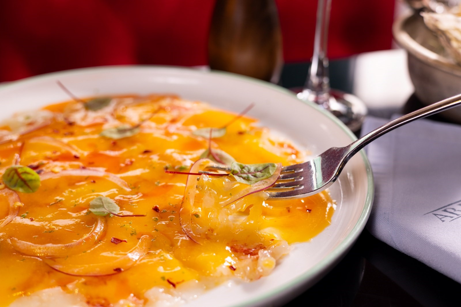 鋪滿野生紅蝦、香甜芒果、薄切紅洋蔥、青檸汁,蝦味濃郁又微甜清爽。食落仲有辣椒片、紅辣椒、辣椒油帶嚟嘅溫熱感,配合特級初榨橄欖油嘅滑潤,平衡幾種風味。當作開胃菜,飲吓酒幾有feel。
