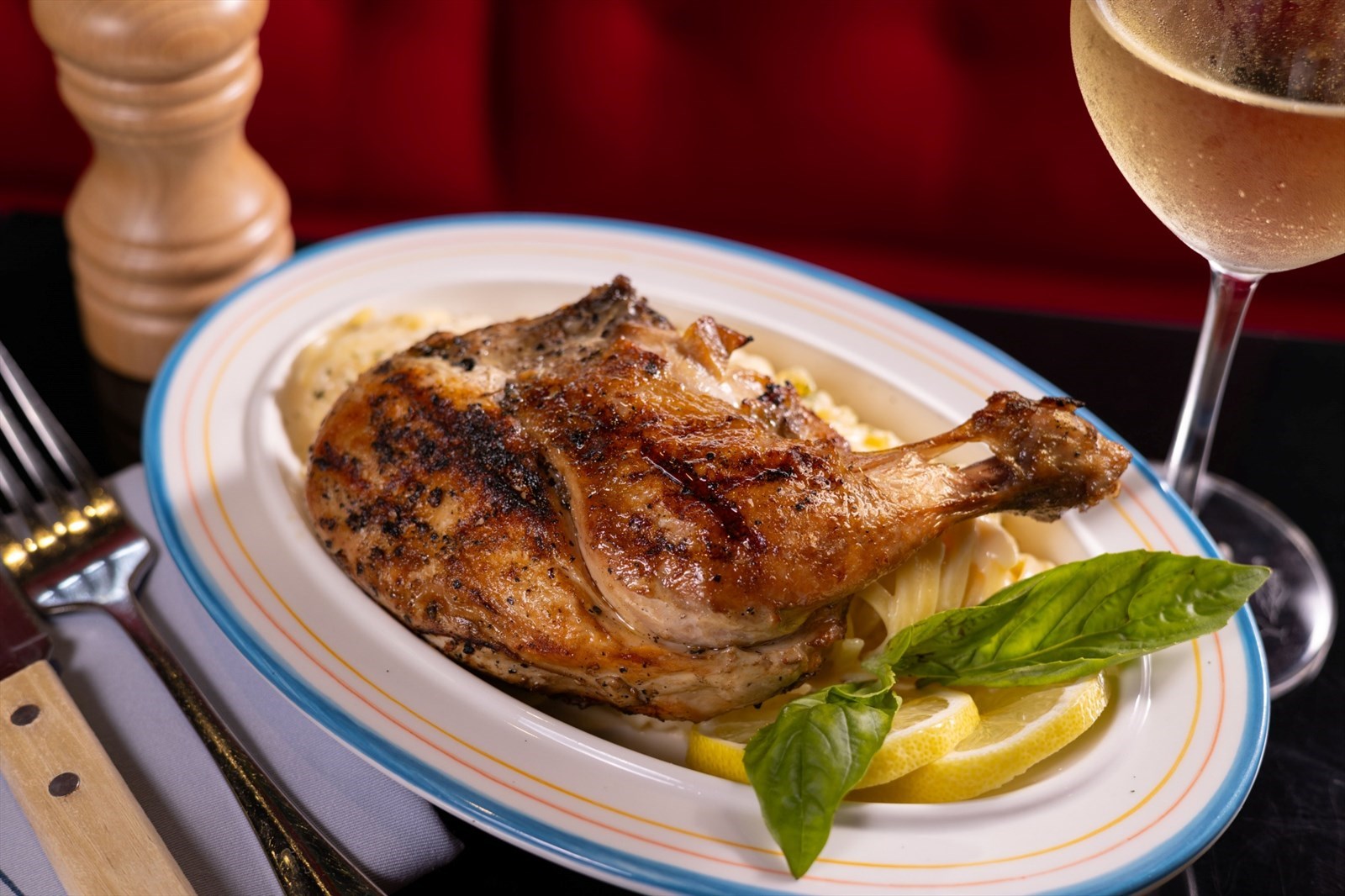 蛋製寬麵幾絲滑,拌以新鮮西西里檸檬、忌廉同巴馬臣醬。燒雞幾大隻,入面肉質仲keep到好嫩滑。加咗新鮮檸檬片同羅勒,食完成碟雞都唔會膩,同場都提供無雞嘅素食選項。