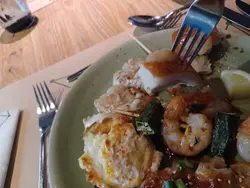 第二道菜,西式串燒。焗蟹蓋同串燒蝦都好美味。乳豬好嫩。入口即溶。