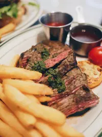 板燒自家30天乾式熟成安格斯西冷扒伴燒汁