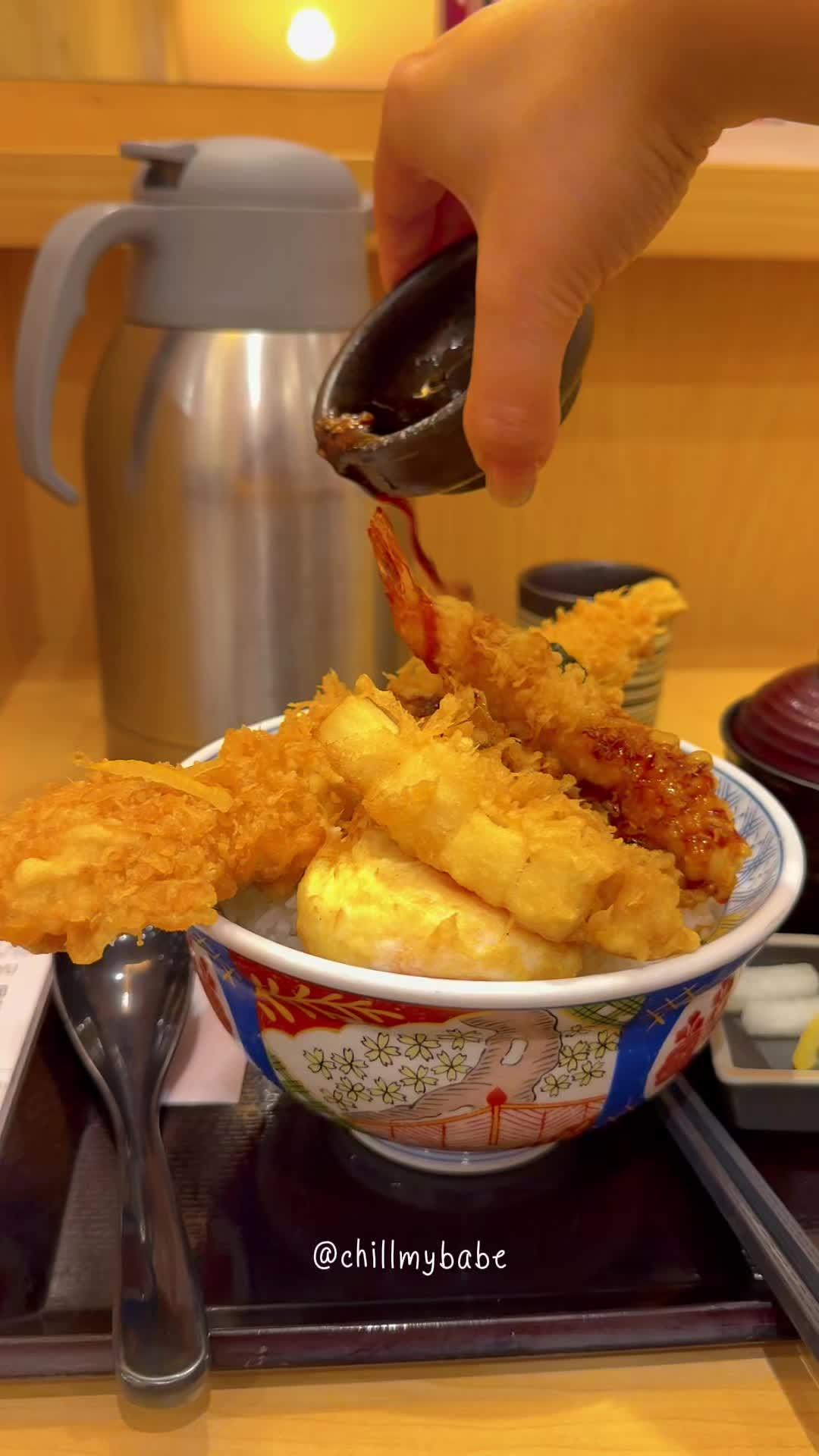 江戶前天丼 迷你天丼&稻庭烏冬 30cm穴子天婦羅 海老天婦羅