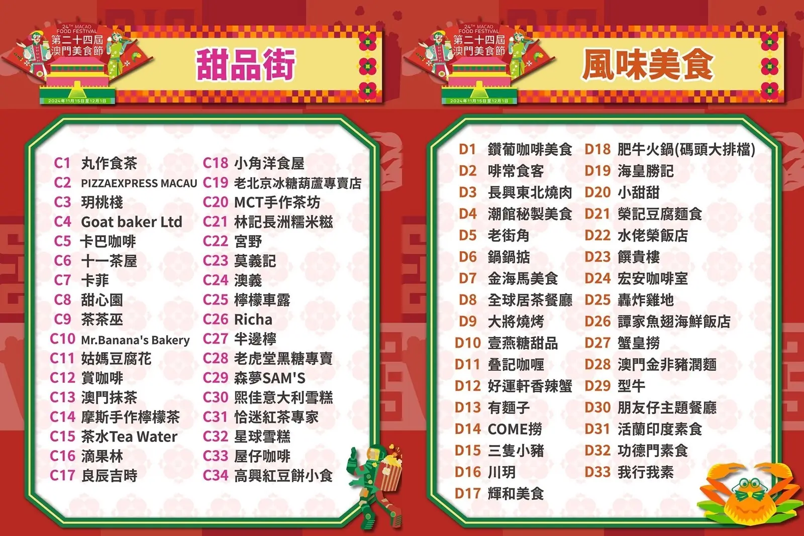 過海嘆美食~澳門年度大型活動「第二十四屆澳門美食節」,由即日起至2024年12月1日舉行,而作為「創意城市美食之都」當然美食多籮籮啦。今屆匯聚141個餐飲品牌、10個遊戲攤位,仲有連串精彩表演節目,快閃一轉relax吓都唔錯。美食攤位包括中式、歐陸、日韓等風味,一次過食勻全世界呀!