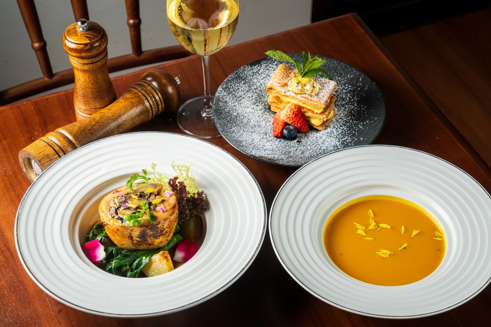 【甜品(+$28)】 芒果拿破侖 鮮果芝士撻 巧克力佈朗尼