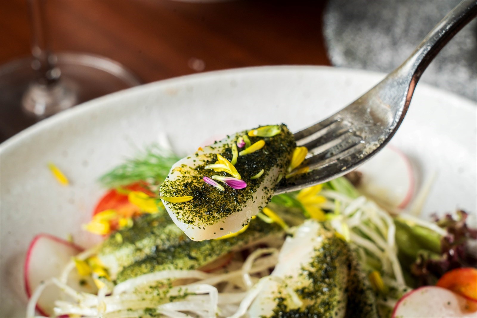 沙律鋪滿低溫慢煮鯛魚,分量多到有驚喜。而且慢煮鯛魚好嫩滑,配埋昆布粉、檸檬清新鮮味,好突出到魚肉鮮甜。