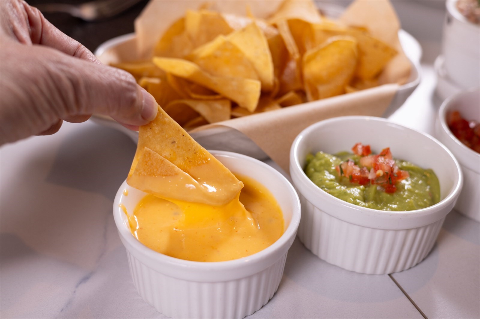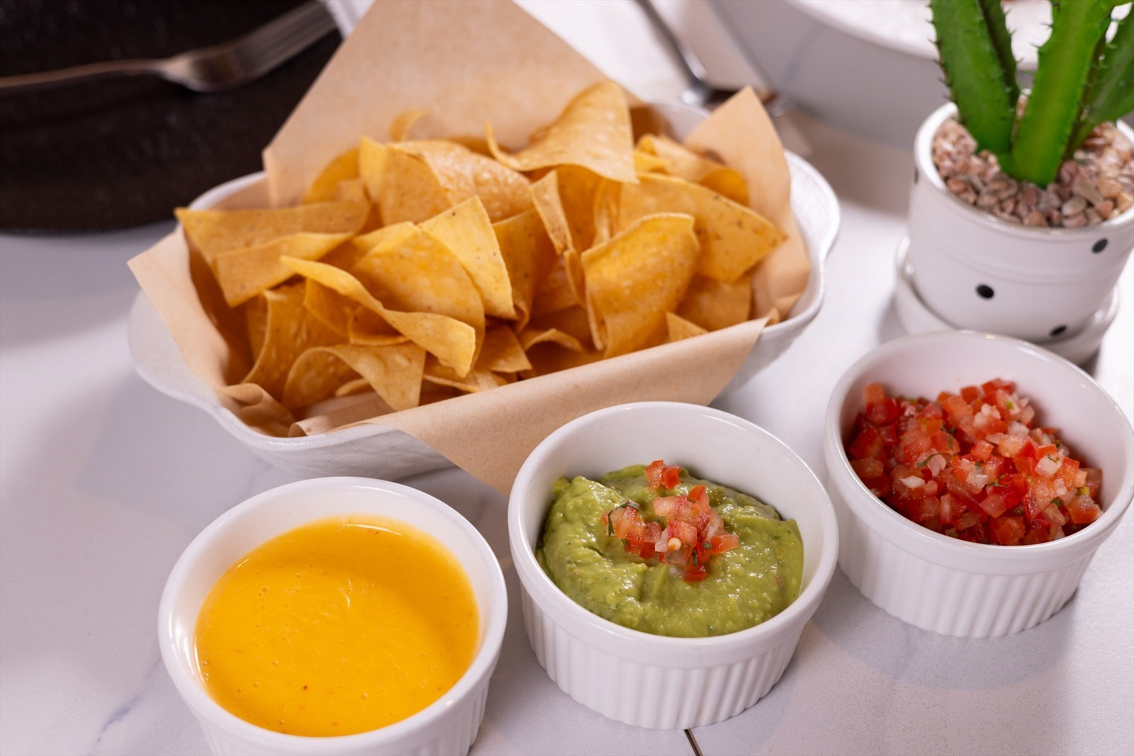 講到最熟悉嘅墨西哥菜,一定係粟米片啦!飲住酒慢慢食都Keep到脆。而且包咗3款醬—車打芝士醬、牛油果醬、番茄莎莎醬,一晚Encore兩碟都完全唔悶,佐酒一流。