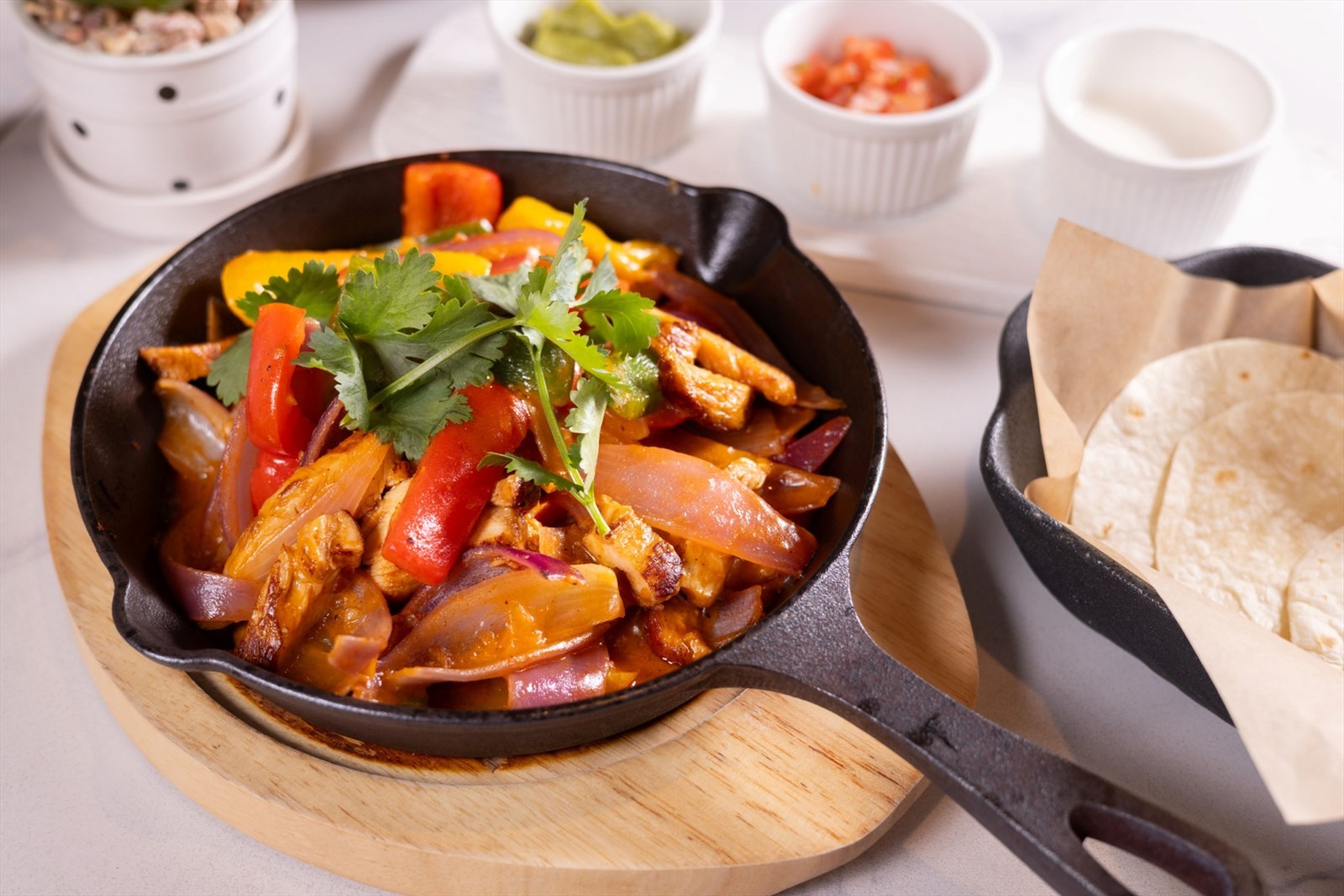 想有啲儀式感,好推薦可以自己包捲餅嘅Fajitas。烤肉用鑄鐵鍋熱辣辣上枱,食嗰陣自己拎塊粟米餅,再舀啲烤肉餡、醬汁。想多餡少醬定多餡多醬都得!