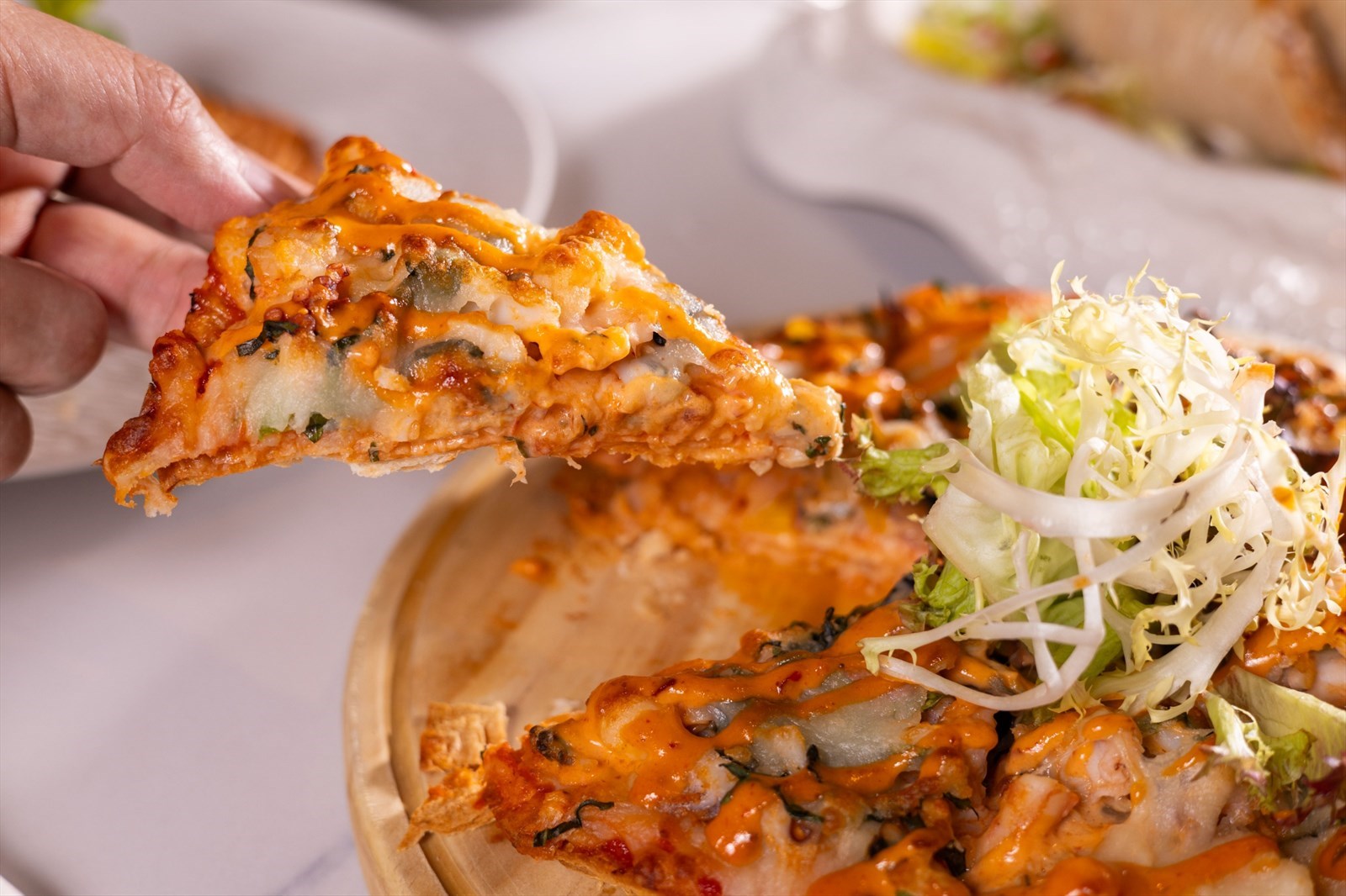 召喚各位墨西哥辣椒醬Fans~ 呢款薄餅嘅靈魂,正正係自家製墨西哥辣椒醬!食落辛辣濃郁,配料仲係新鮮八爪魚、蜆肉等,估唔到食到咁重海鮮味嘅薄餅啊。