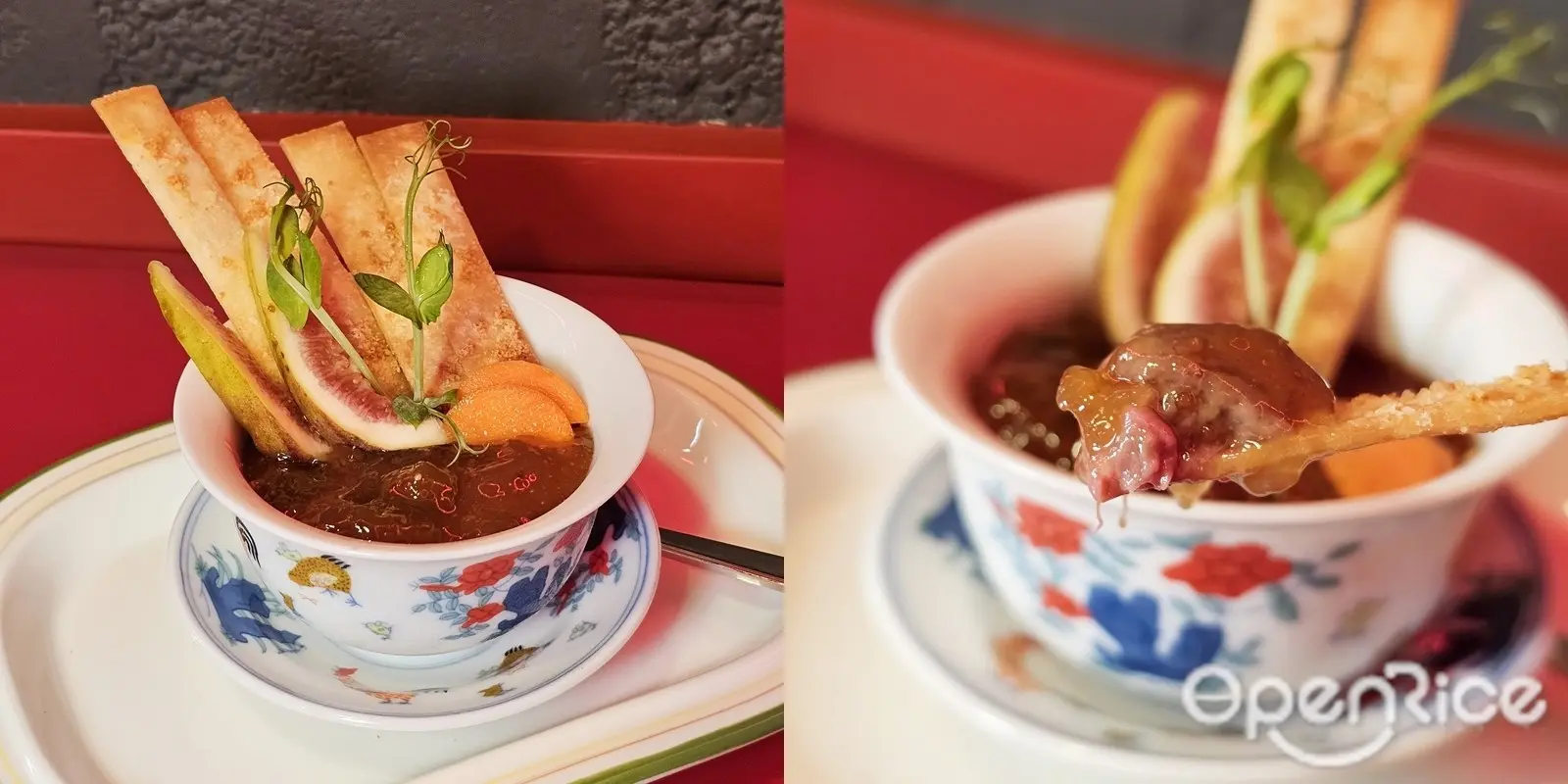 🔥 試食筆記:呢道菜係街頭風味變奏版!雞紅同蘿蔔煮得香辣入味,仲有釀入少少布里芝士嘅福袋,全部都盡吸湯汁精華~