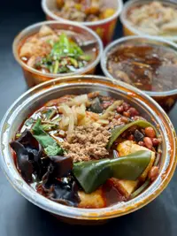 「鎮店麻辣燙」多種配菜自由選擇混合而形成,湯底辣度可選,是一道建議必食美味佳餚。