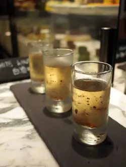 西式甜品區永遠也是最擠湧,款式老實說不算特別多,但精緻的可不少。其中,我最推介的是白酒啫哩,抹茶奶凍及抹茶蛋糕;前者白酒味極濃,內有少許朱古力粒,晶瑩通透,很是誘人,但要提醒大家這個甜品的酒精成份,可不是說笑的。