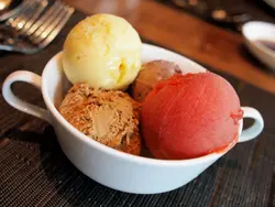 雪糕永遠都是最受歡迎的甜品,見到食客不停排隊,就知這話錯不了。The Market提供了五款Movenpick雪糕及一款自家製蔬菜雪葩,Movenpick出品的雪糕不用多介紹,唯一美中不足是沒有Tiramisu口味。蔬菜雪葩味道較特別,將新鮮蔬菜冷藏至結冰後,再磨成沙冰,由於沒有牛奶成份,所以相比名牌雪糕,幼滑度一定有所不及,但吃下去酸酸甜甜的,味蕾覺得很清新,感覺蠻不錯。