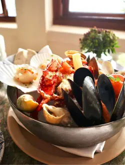 食物方面,餐廳主打西式料理,我哋就喺1920古典建築裡嘅西式餐桌入面嘗試了幾款海鮮及牛肉菜式: