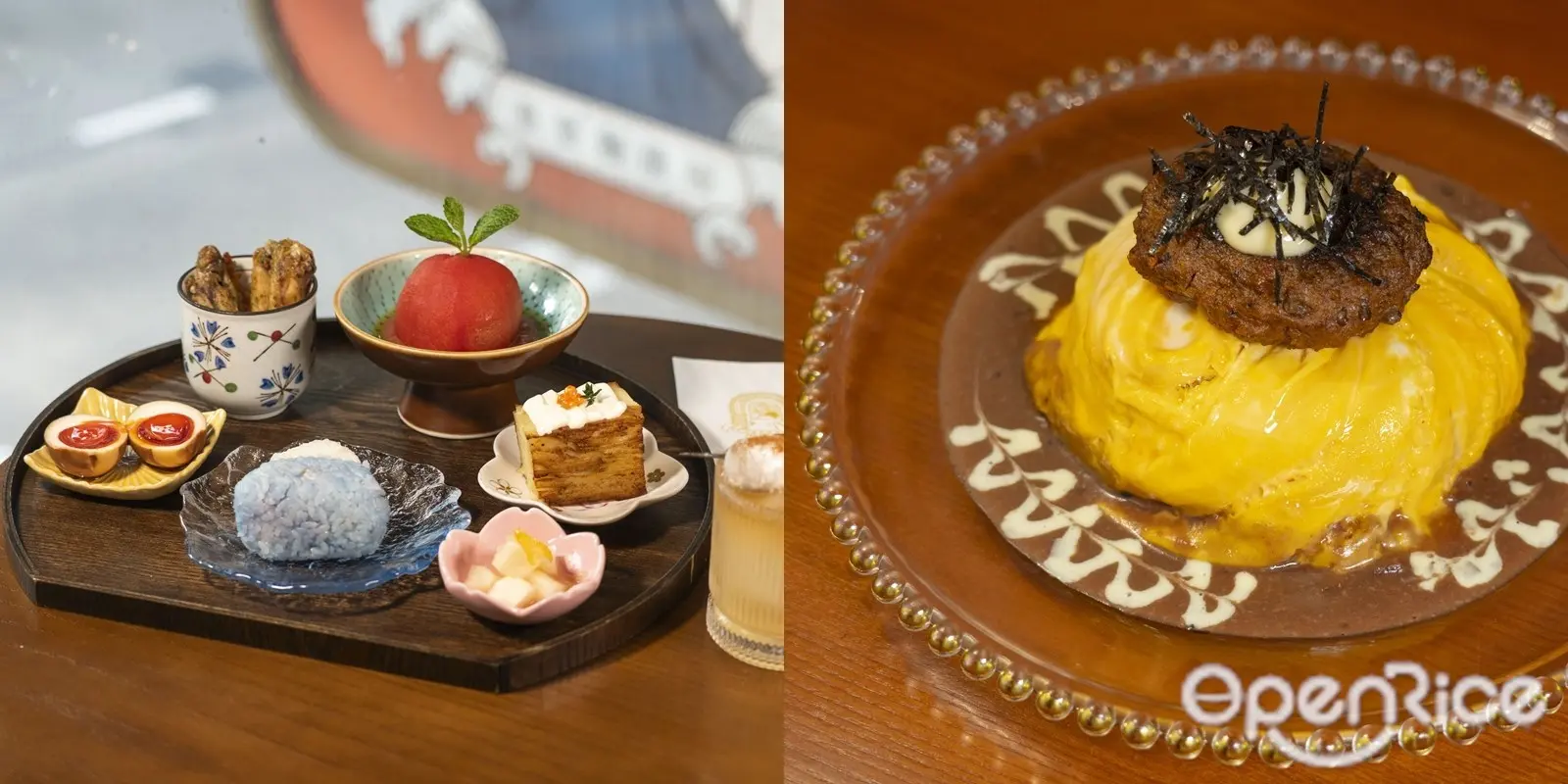鹹食必試招牌全日多品料理(婆婆經典之選),包羅5款日式小品菜式,擺盤精緻,單看賣相已覺賞心悅目!最搶眼必定是富士山造型飯糰,內裡原來是三文魚泡菜餡~另有煙燻酸奶油薯仔芥末千層薯配三文魚子、香口惹味的名古屋手羽先、酸甜開胃的梅酒冷蕃茄、茶葉溏心蛋,每款料理的食材配搭和做法都相當講究。和牛漢堡蛋包飯亦是人氣菜式,漢堡扒厚肉鬆軟富肉汁,搭配的酒粕紅酒汁令人眼前一亮,散發濃醇酒香。