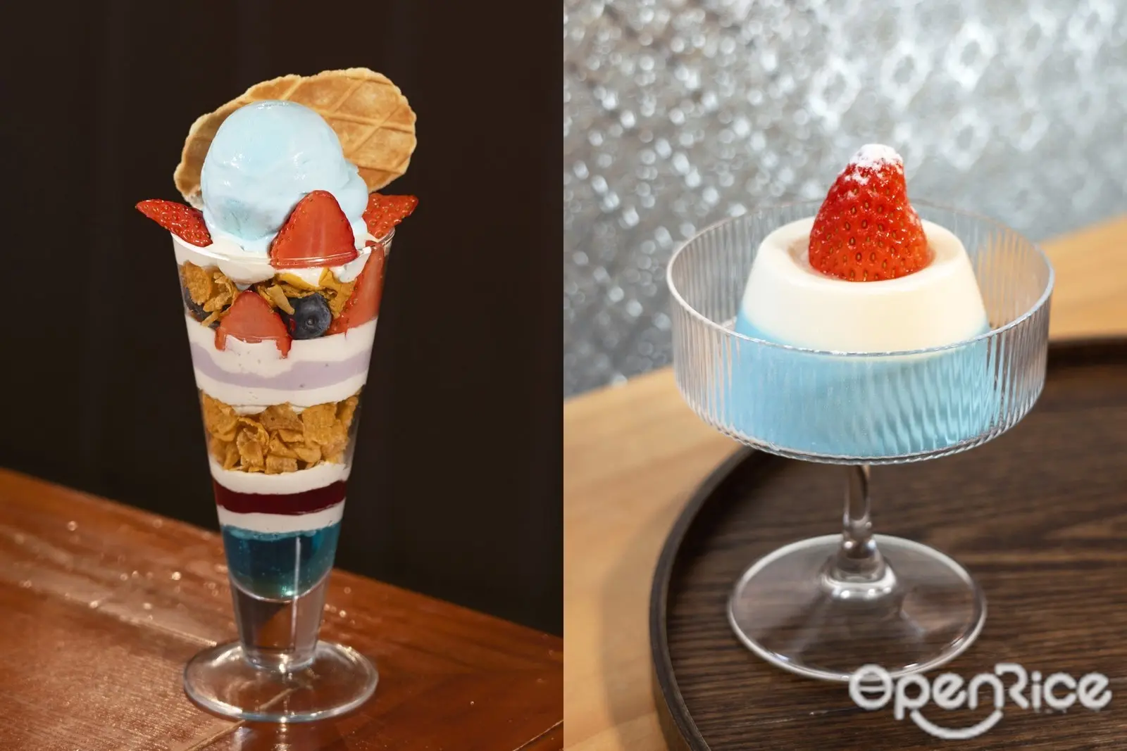婆婆珈琲屋的甜品都融入了日本富士山元素,首選色彩繽紛的富士山芭菲,加了沖繩海鹽雪糕、戚風蛋糕、厚滑奶蓋、藍莓乳酪、粟米片脆脆等,口感豐富。至於粉藍色的富士牛乳布丁外形似迷你版富士山,可愛造型至適合相機食先!布丁入口香滑,奶香味濃厚,面層還有鮮紅的士多啤梨。