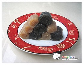 2. 也可將杏仁卷改成杏仁芝麻千層糕,只要將杏仁粉漿和芝麻粉漿逐層倒入糕盆內蒸便可。