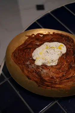 拌入Buratta Cheese同吃,好欣賞蕃茄醬汁味道複雜鮮香,充滿溫度手作感覺,正是店家最擅長的,意粉煎過口感更加分明,先是酥脆的食感,然後是熟悉的手工意粉的水準,是一種新體驗,幾推薦這款新口味。