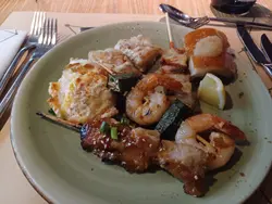 第二道菜,西式串燒。焗蟹蓋同串燒蝦都好美味。乳豬好嫩。入口即溶。